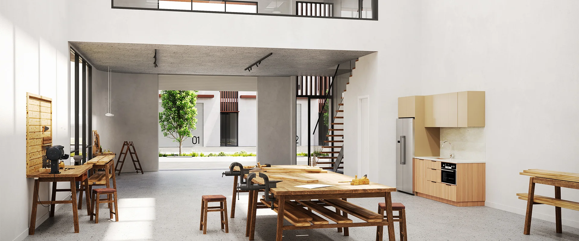 Each of the office-warehouses is designed for business with 7m warehouse clearance, 2.7m office ceilings, concrete mezzanines, and climate control. Copper tapware, stone kitchenettes, and on-title parking add everyday efficiency and comfort - it is much more than a workspace.